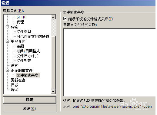 许多用户在使用FTP软件传输文件的时候,突然发现了一些错误想要修改,但是如果要在调用相关的软件打开,又比较麻烦,所以很多FTP软件就通过文 件关联来让用户直接调用相关软件打开要修改的文件,方便了用户的操作。通过菜单【编辑】—>【设置】的正在编辑文件选项,我们就可以设置关联程序。
