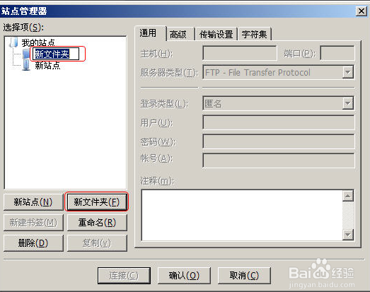 第一步:我们可以点击【新站点】按钮,输入站点的名称(它只是对FTP站点的一个说明)。