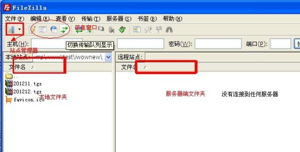 快速连接就是不需通过站点设置,直接输入IP地址、用户名及密码进行连接。所以它适合用在需要临时性连接的站点,并且快速连信息接会被保存,如果下次还想使用,就可以直接选择进行连接了,非常方便。通过快速连接工具栏输入相关信息,点击快速连接按钮就可以了