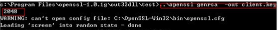 2)执行命令生成证书的key文件:..\openssl genrsa -out client.key 2048,如下图所示: