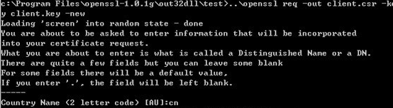 3) 生成证书请求文件:..\openssl req -out server.csr -key server.key -new