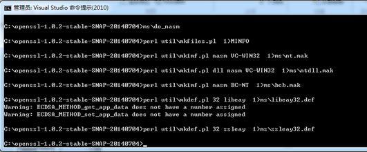 (1) 如果是编译OpenSSL动态库,则在命令行键入 nmake -f ms\ntdll.mak