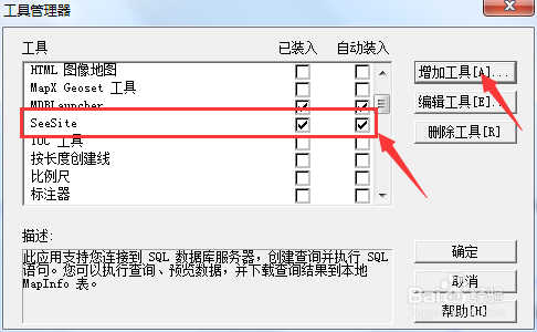 这样seesite短工具就这样被加入工具管理器,我们只需在自动装入将其勾选,以后每次登陆都会自动的载入工具,非常方便使用。