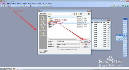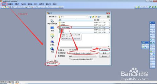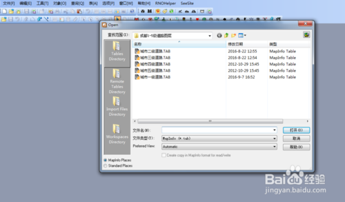 在MapInfo中打开基础数据表(文件类型选Excel)