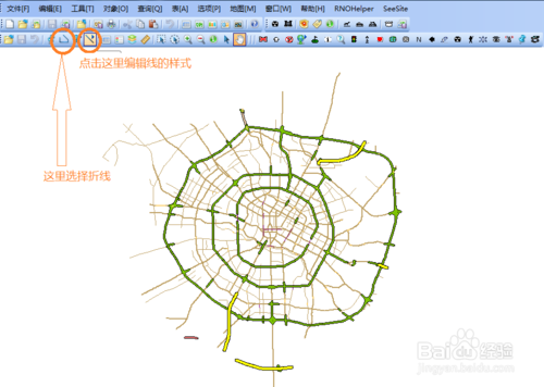 最后在单机”折线“按钮,就可以在地图上画出你自己的路测路线图了。