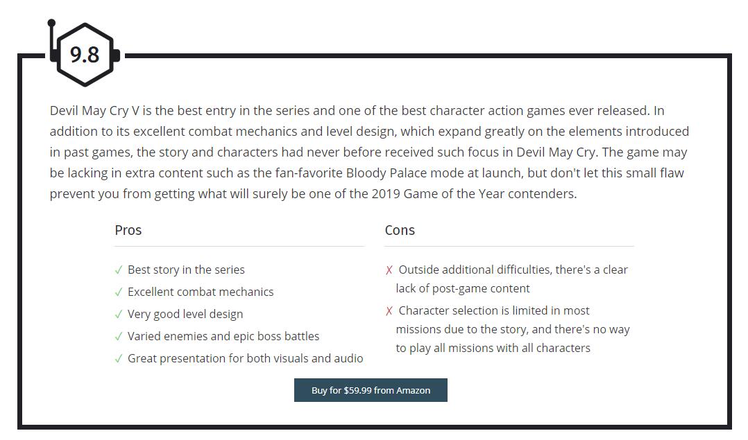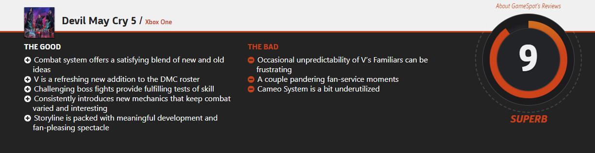 首先是大名鼎鼎的IGN,给出了9.5的高分,表示为将鬼泣系列的战斗体验推上了新的高度,剧情方面也相当有趣。