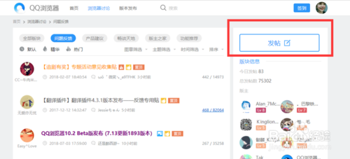 在论坛内点击左边的发帖,可以进行发帖反馈(如下图)。