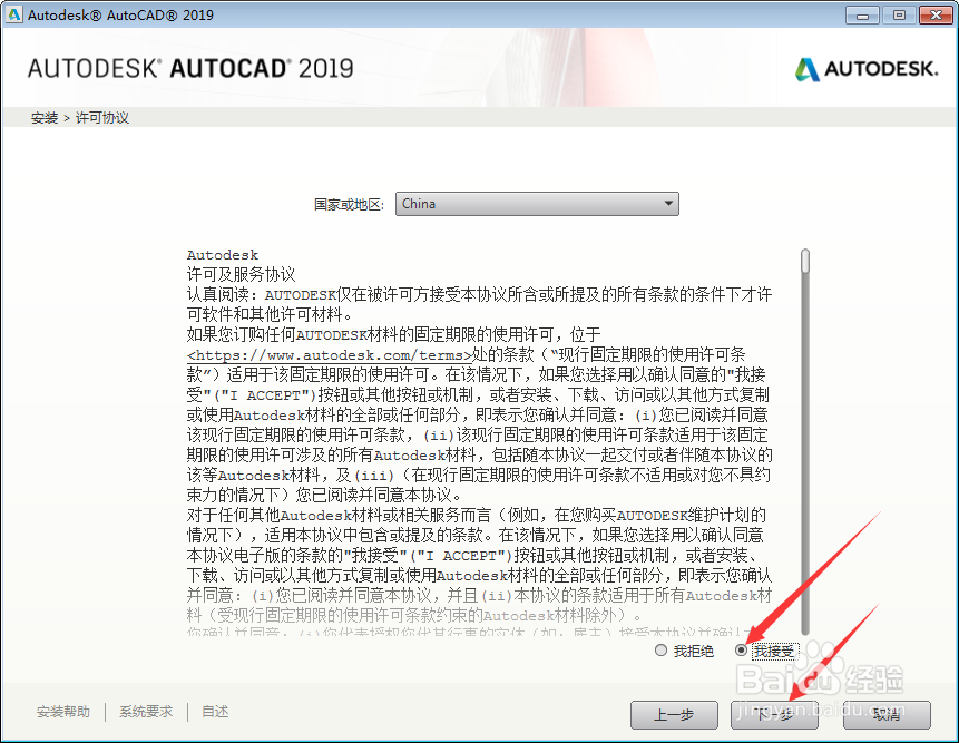 勾选我接受许可协议并点击下一步,如图所示。
