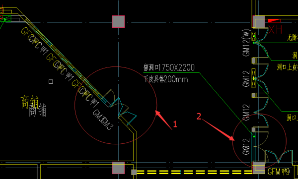 ▲上图可以看出来1、2处明显有不同,1处门的位置不同,2处幕墙的地方更改为建筑门