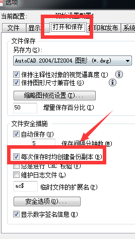 5.CAD保存如何有自动副本bak文件?