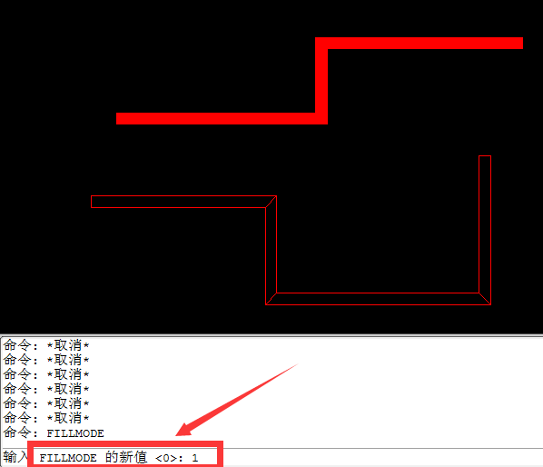 A.输入:FILLMODE,再把新值改为1,则会变成实线