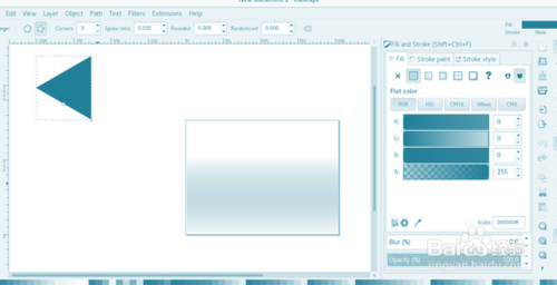 4.接着在矩形设置轮廓颜色,使用填充和轮廓对话框将轮廓设置为none,绘画一个三角形使用3个顶点的星形或者多边形工具,可以使用ctrl键给三角形一个角度并且使之对称。