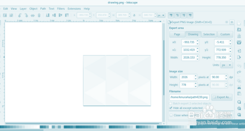 6.最后导出png文档,点击File>EXPORT PNG打开导出对话框,选择文件位置和名字,确保选中的是Drawing标签,并点击EXPORT。