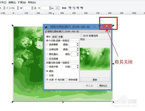 8.让后将软件左下角的一个小“X”点一下。最后将图片另存为svg格式的图片即可!这样处理的图片不会失真哦。