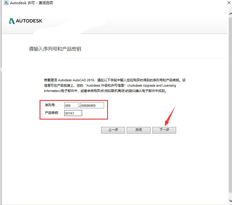 12.输入序列号:666-69696969 产品密钥:001K1 然后点击【下一步】。