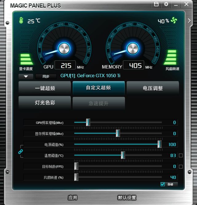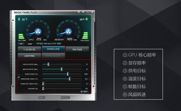 影驰魔盘是针对影驰显卡设计的显卡优化工具。影驰魔盘可以帮助用户对自己电脑影驰显卡进行超频操作,使用户影驰显卡可以在自己电脑上流畅运行,是所有玩家优化显卡必备好帮手。