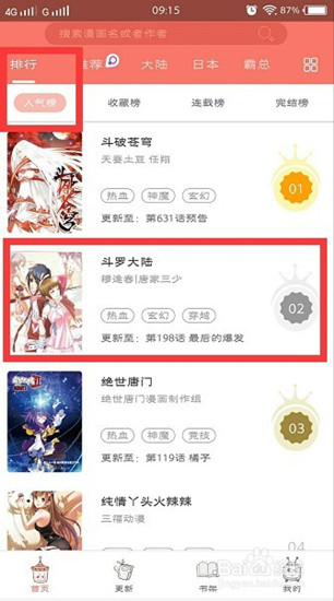 3、你也可以点击软件顶部的分类按钮,找到自己想要的漫画,可以看见最新的更新时间,然后点击开始阅读。比如小编在“排行”里,找到一个漫画,然后点击“开始阅读”。