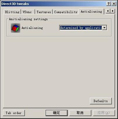 下面我们回到主界面,在弹出来的工具栏中选择“DirectDraw and Direct3D settings”图标。该选项包括多个子面版:其中包括了Mipmapping纹理映射、Depth buffering深度缓冲、Blitting位图传送、VSync画面重绘与刷新同步、Textures纹理、Compatibility兼容性、Antialiasing抗锯齿等各方面的调节。这些项目的调节功能会对显示效果和显示性能造成直接影响,初级用户不宜过多尝试。