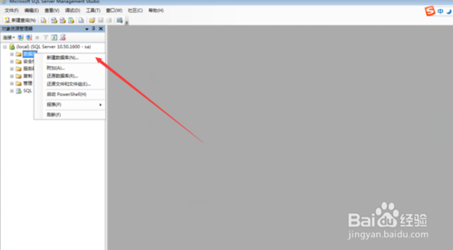 3、右键单击【数据库】节点,从弹出来的快捷菜单中选择【新建数据库】命令。