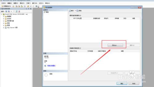 7、在【数据库文件】列表中包括两行,一行是数据库文件,而另一行是日记文件。通过单击下面的【添加】、【删除】按钮添加或删除数据库文件。