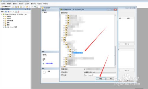 5.在自己的本地电脑里面找到刚刚需要附加的数据库文件,找到“.mdf”文件,点击附加即可~