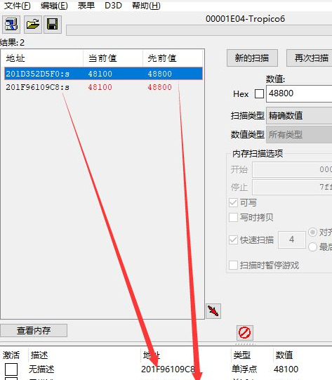 得到两个地址。那么这两个地址怎么选择呢?很简单。在游戏里。再造一个东西,看变动值红字。