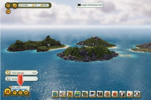 ②游戏速度(最大4倍,可以暂停)以及岛屿/宫殿快速镜头切换。上方会出现任务跟踪菜单。