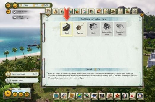 当你修建了建筑,还需要继续修建道路(road)将各个建筑联系起来。