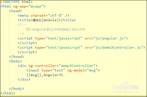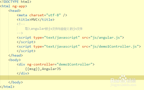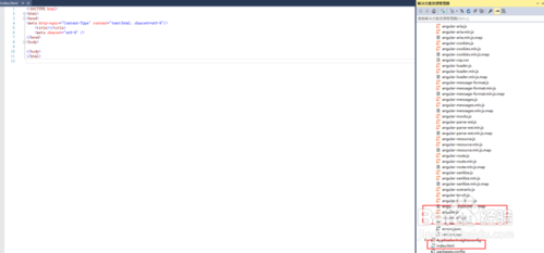 2.下面很简单了,就是引入angularjs包了,这个大家都会,小编引入的是压缩版本的,如下图所示。