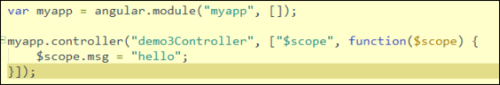 在上述代码中,我在js文件中声明了一个全局的函数demo1Controller,在js的开发中是不建议定义全局的函数或变量的,它污染了全局空间,这种编码是不”优雅”的。在angular中我可以使用module(模块化来解决这个问题)