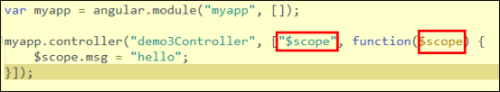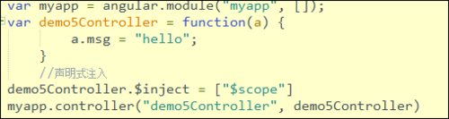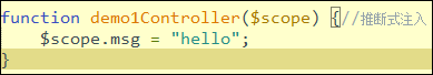 如果没有明确的声明,AngularJS会假定参数名称就是依赖的名称。因此,它会在内部调用函数对象的toString()方法,分析并提取出函数参数列表,然后通过$injector将这些参数注入进对象实例。