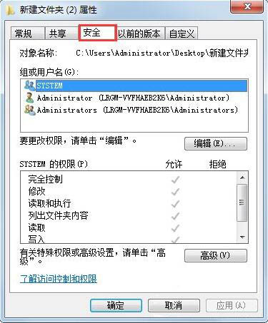 2、在“属性”窗口中单击“安全”选项卡;如图所示: