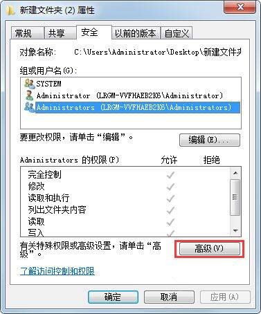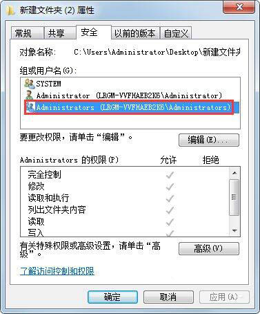 3、在“安全”选项卡中点击“组或用户名”下方的Administrators选项;如图所示:
