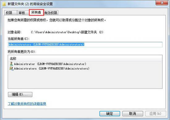 5、在“高级安全设置”窗口中单击“所有者”选项;如图所示: