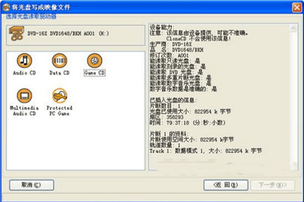 除此之外,你还可以进行整盘进行复制刻录,可以说这是CloneCD的最大的亮点。因为CloneCD采用的工作模式是Raw模式,所以能真实地1:1复制CD,不管是否有保护或加密之类,它仍然忠实地将它复制下来。不过也需要自己的刻录机支持Raw模式才可以,否则无法正常的进行刻录。还好现在大多数主流的刻录机都支持Raw模式,所以也不存在这个问题了。