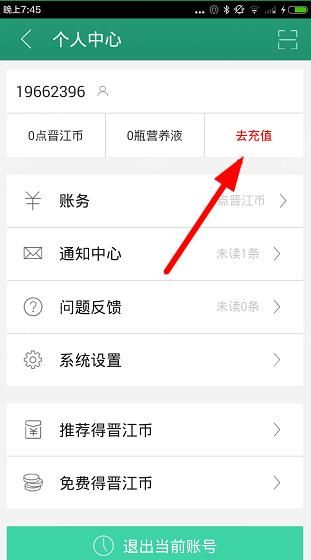 2、在个人中心里看到去充值的位置了吗?果断点击它!!!!