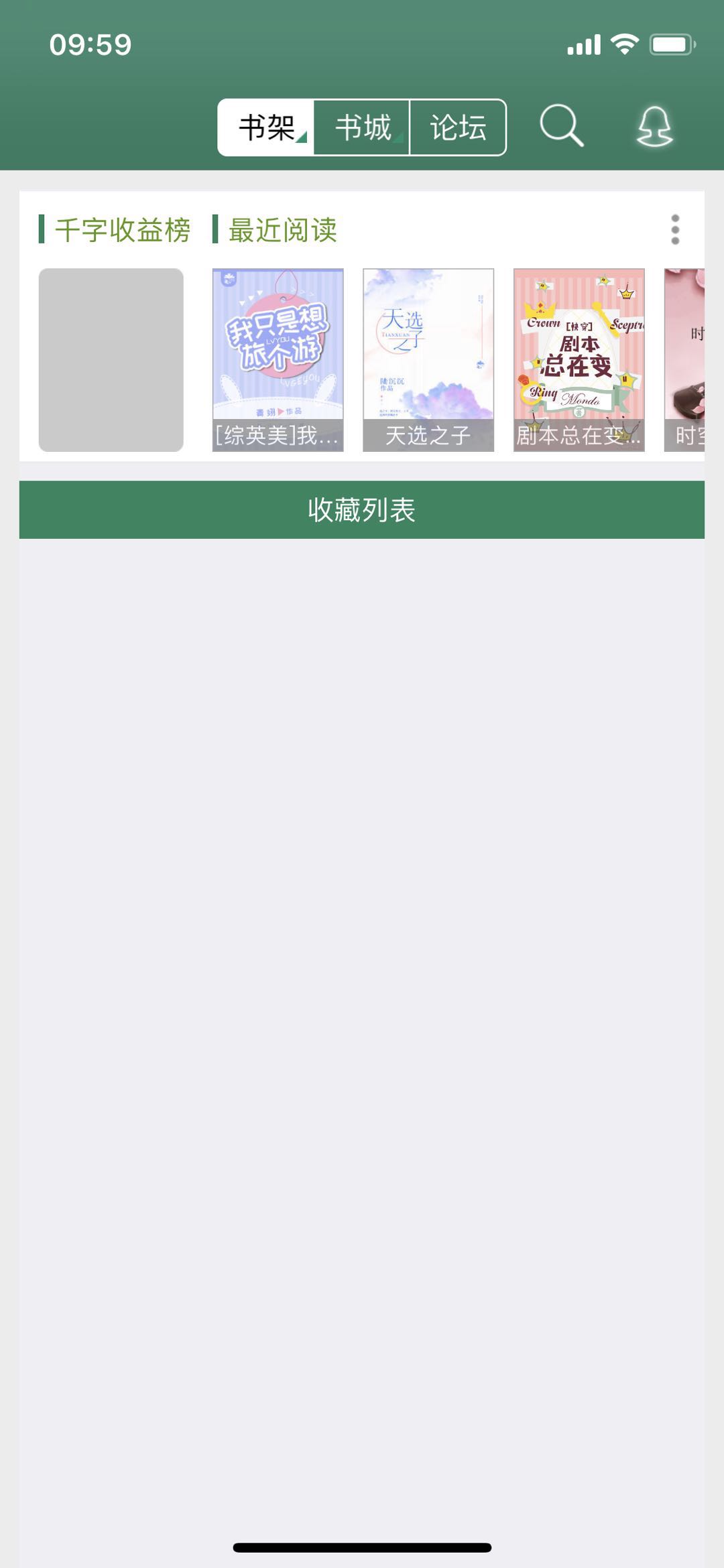 1、打开晋江文学城手机版后,点击书架,即可看到最近阅读以及收藏的小说列表。