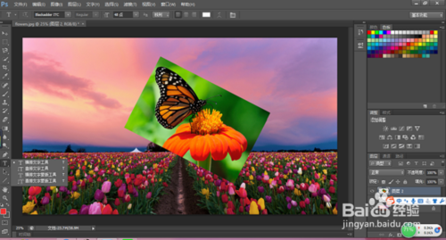 文字工具:选择T字型的工具,点击右键选择需要的横排或竖排文字工具,在编辑的图片上点击一下,然后输入文字即可,文字大小颜色类型