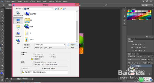 保存图片:①点击文件②存储为③修改文件名、修改文件格式(一般为JPEG)④点击保存