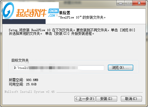 4、选择软件安装的位置,建议安装在D盘,默认安装位置“C:\Program Files\Next Limit\RealFlow 10”,点击安装;