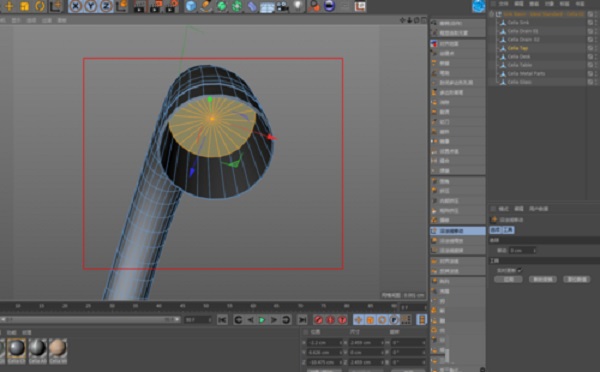 3.接下来,为了避免穿帮,将水龙头的出水处进行挤出操作,并将其顶面删掉。