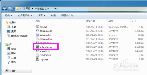 双击后关闭自动打开的弹窗,然后将安装文件夹中【win7】文件夹的所有文件复制覆盖黏贴到【C:\Flex】,最后运行【lmtools.exe】,按下图操作后重启电脑