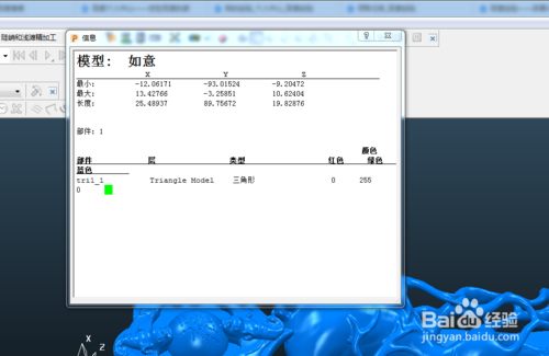 2.在弹出的对话框里边看模型的大小,是不是你所需要加工的大小单位是毫米