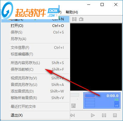 1、菜单功能:文件信息、标签编辑器、所选内容另存为、保存当前帧、视频流另存为、音频流另存为、添加音频流、移除所有音频