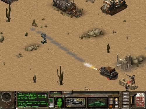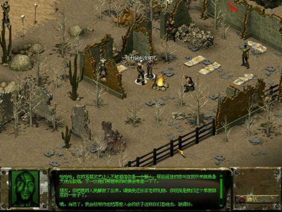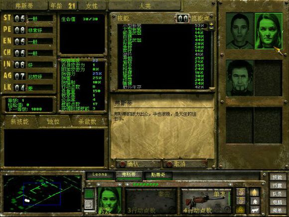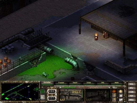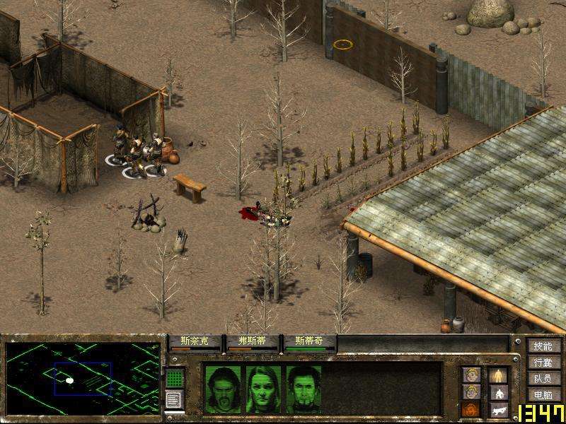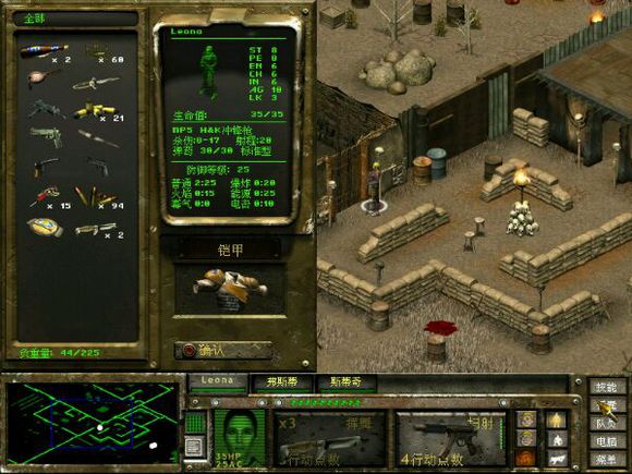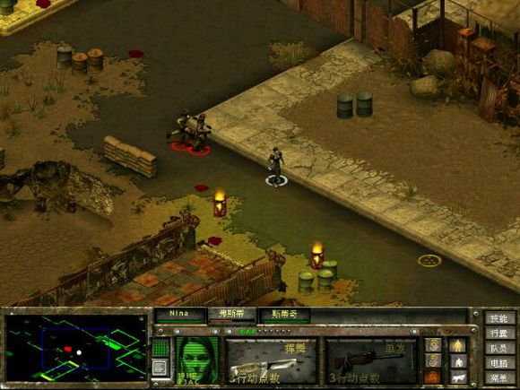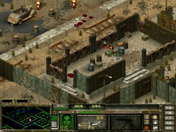 拣短节说,因为第一关是辐射战略版钢铁兄弟会入手关,所以不是很难。也让玩家熟悉一下操作的模式和游戏方法。辐射1,2采取的是回合制战斗模式。而这一作创新了即时战略模式更流畅,更有趣。当然各战斗可以随时切换,找到适合自己的就是最好的。本人是即时模式,偶尔按回车键切换一下回合制的模式。因为有时需要先埋伏再同时进攻所以回合制提供了可以随意调度的便利。