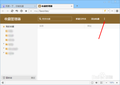 4、在收藏管理画面的右上角,同样找到选项按钮