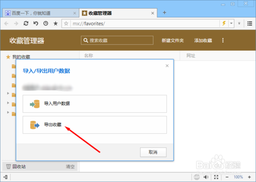 6、接着会弹出导入,导出用户数据窗口。在窗口中找到导出收藏