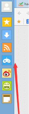 1、打开傲游浏览器,傲游的插件在整个浏览器界面的左侧。图中箭头所指的那一系列图标即傲游浏览器的插件。