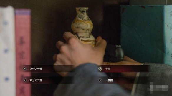 象征着1、2、4的选项:四分之一圈、半圈、一整圈,按这个选择就能打开密室救纯子了。