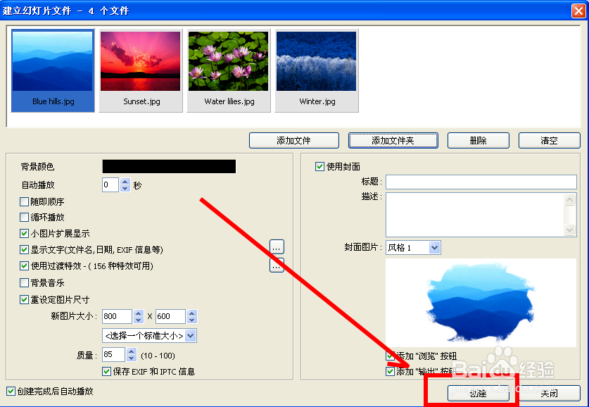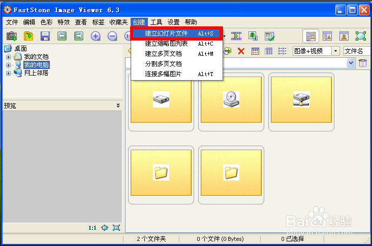 选择菜单中的“创建”--“建立幻灯片文件”。